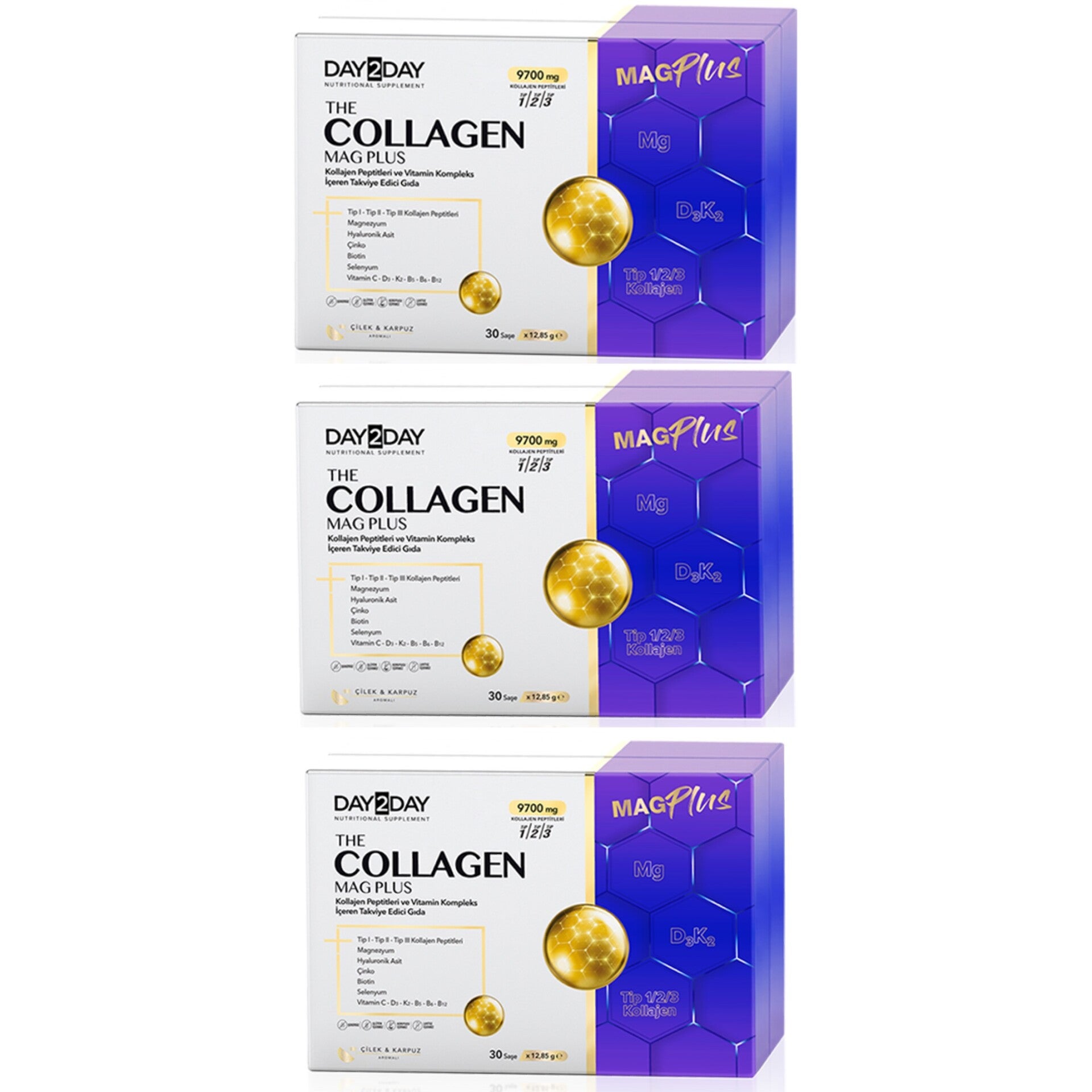 MAG PLUS Collageen 9.700 mg bevat de belangrijkste types (1,2,3) gehydrolyseerd collageen, D3 + K2 en magnesium voor o.a. de huid, gewrichten, kraakbeen, botten, pezen en bloedvaten. Gecombineerd met actieve stoffen zoals peptiden, aminozuren, vitaminen, mineralen, anti-oxidanten en taurine. All Body is speciaal samengesteld voor mensen met heftige pijnklachten aan hun botten, gewrichten & spieren. Voor o.a. een sneller herstel van wonden, of sporters die dagelijks hun spieren, gewrichten en botten belasten tijdens het sporten. De inname van Day2day collageen en de krachtige ingrediënten zorgen voor de: